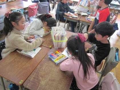 2年学級活動「ビッグフェスタの準備」 明日の本番に向けて、協力しながら準備を進めていました。