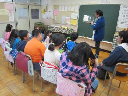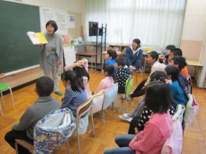 ひまわり学級「読み聞かせ」 おはなしカメさんの方々が読み聞かせをしてくださいました。楽しそうにお話を聴いていました。
