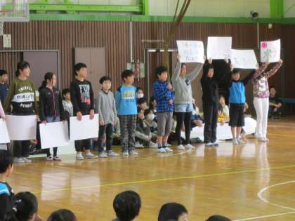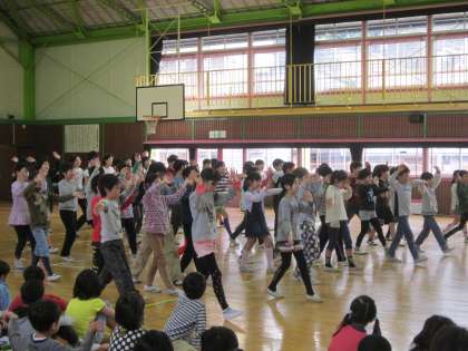 インフルエンザの関係で延期していた6年生を送る会を実施しました。下級生の6年生のために心を込めた出し物、6年生の最後の全校での発表、校旗引き継ぎなど、最後のとても良い全校行事となりました。