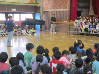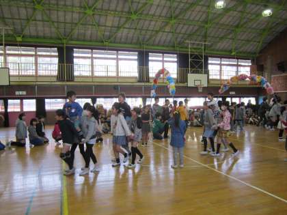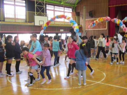 1時間目は、1年生を迎える会でした。1年生全員と全校児童が初めて対面しました。上学年の子供たちのおもてなしに1年生が嬉しそうにしていました。最後は、5・6年生の背中にのって退場しました。