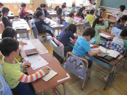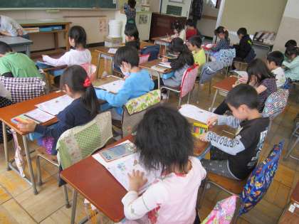 1年国語科「ひらがな」 「つ」の読み方、書き方、使い方などを学習しました。花丸をもらってとても嬉しそうでした。