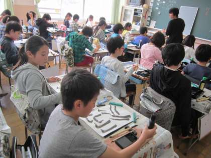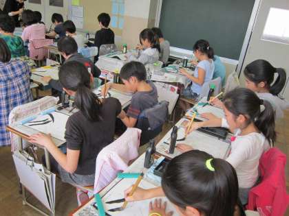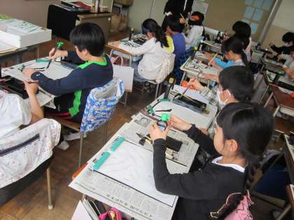 6年国語科「書写」 学年初めての書写・毛筆の授業です。いろいろな点画の練習をしました。