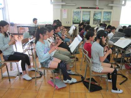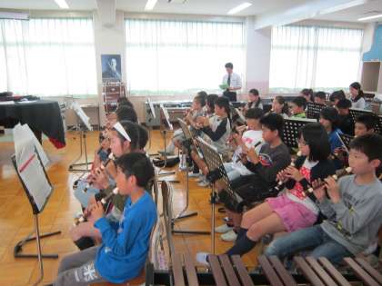 6年音楽科「栄光の架橋」 リコーダーを練習してから、楽器のパート練習をしました。最後に17小節目まで全員で合わせて合奏しました。完成が楽しみです。