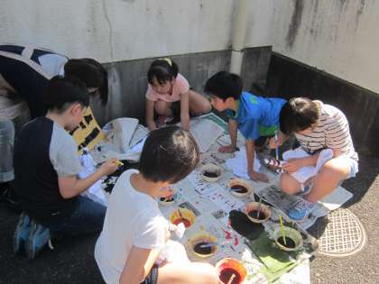 5、6年「ソーランTシャツづくり」 八王子の染物師の方々の指導で多色絞り染めのTシャツをづくりをしました。一人一人オリジナルのTシャツで本番が楽しみです。手伝ってくださった保護者の皆様、ありがとうございました。