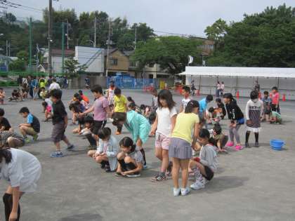 朝会後、運動会に向けて全校でグランドの石拾いをしました。