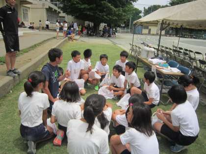 打越中学校の運動会に招かれて、6年生の代表がリレー競技に参加しました。由井第一小学校とよい交流活動となりました。