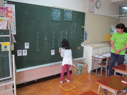 ひまわり学級国語科「はじめまして 自己紹介をしよう」 「あ」の本の音読をしたり、自分の好きなことと写真のマッチングの学習をしたりしました。