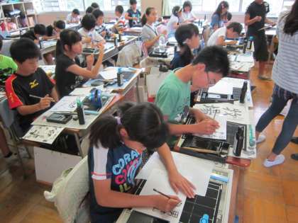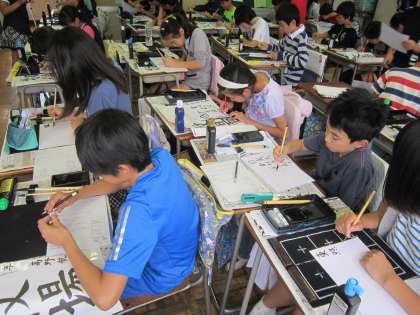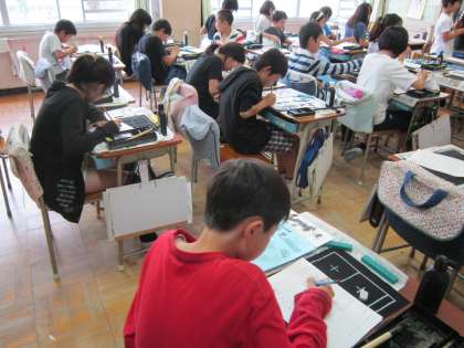6年国語科「書写」 「牧場」の清書を済ませてから、日光で作った俳句を毛筆で清書しました。