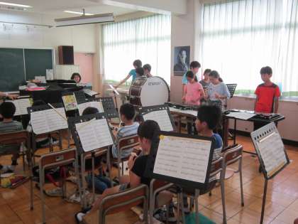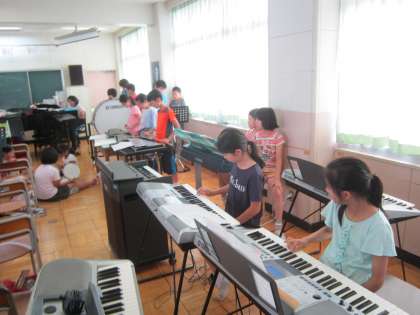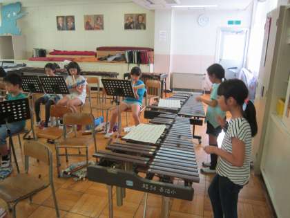 5年音楽科「ありがとう」 自分が選んだ楽器の個別練習の後、みんなで合わせる合奏の練習をしました。