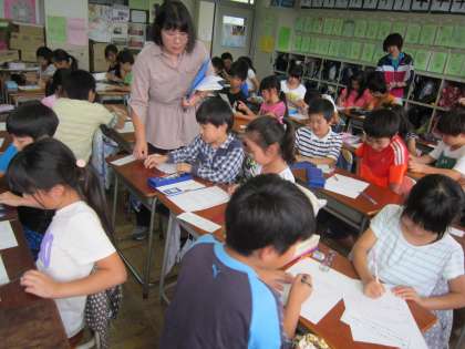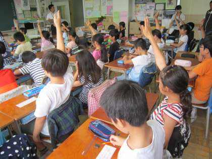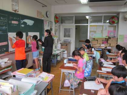 4年算数科「わり算」 今日は、教育実習生の研究授業でした。何倍かを求めるわり算の仕方について、話し合いながら学習しました。