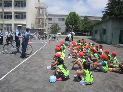 3年生が南大沢警察、市役所の方、そして地域の交通安全協会の方々から自転車安全教室の指導を受けました。実技と講習、そしてテストを受けて、免許証をもらいます。本校では、原則この教室の後から、3年生以上が一人で自転車に乗れる約束になっています。