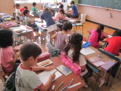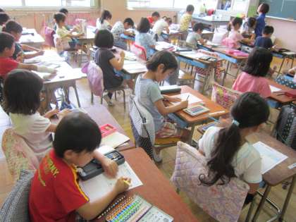 1年生活科「なつだ あそぼう」 ほたる公園に行って、見つけたことをカードにまとめていました。