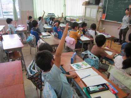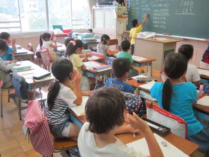 3年算数科「ひき算」 2学級3展開習熟度別の授業です。4けたの数のくり下がりの学習を話し合いながら進めていました。