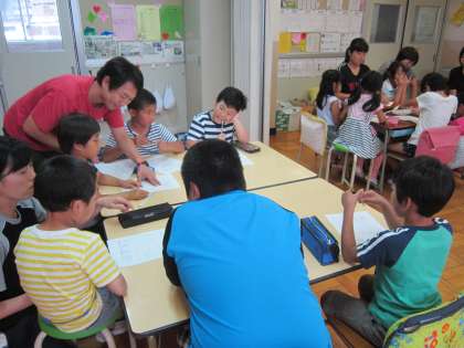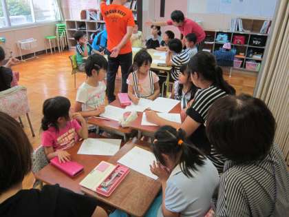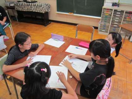 ひまわり学級「宿泊学習」 7月の夕焼け小焼けの里での宿泊に備えて、係活動などの話し合いをしていました。
