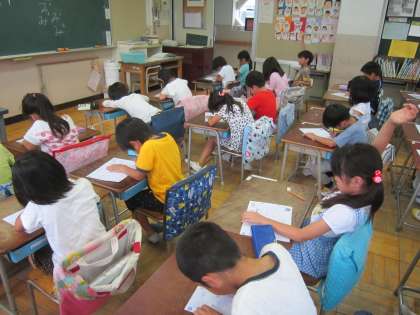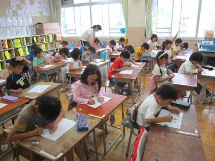 1年国語科「ひらがな」 「み」の書き方と使い方の学習を集中して、丁寧にしていました。