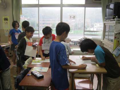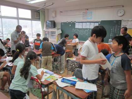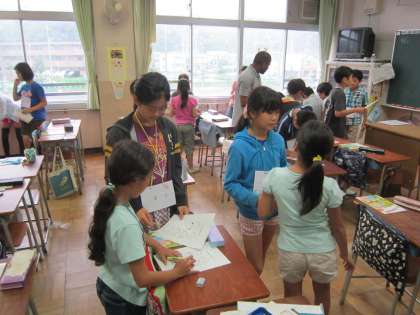 5年外国語活動「I am happy.」 How are you? 今の気持ちを伝えるあいさつの練習を2人組で行っていました。