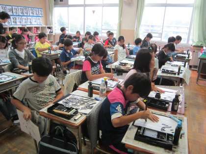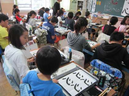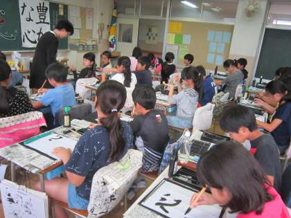 6年国語科「書写」 「豊かな心」を文字の大きさや配列に気を付けて練習しました。「心」を何度も練習していました。