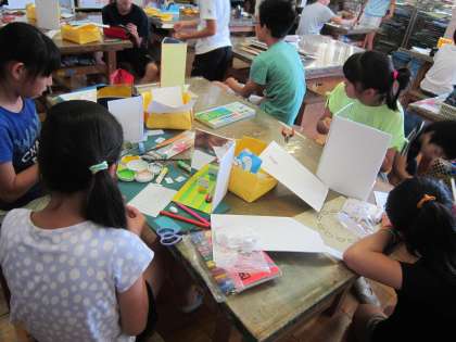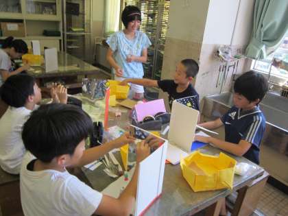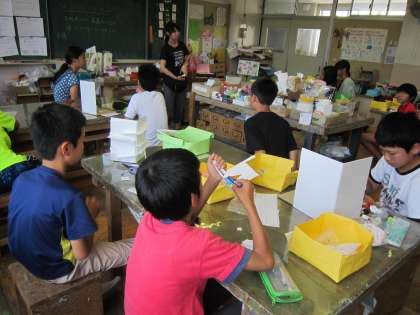 6年図画工作科「ミラクルミラーワールド」 鏡の反射を考えて、工夫した作品がいよいよ完成してきています。