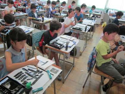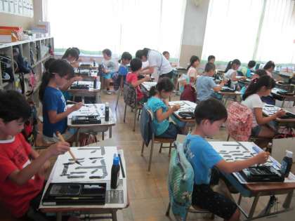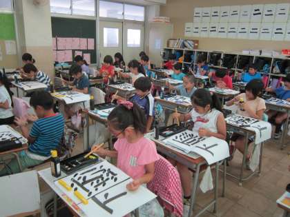 3年国語科「書写」 横の線と点の書き方に注意しながら、「下」という字の練習をしました。