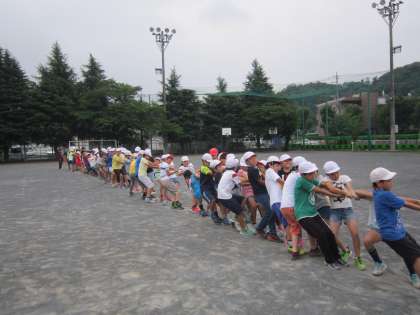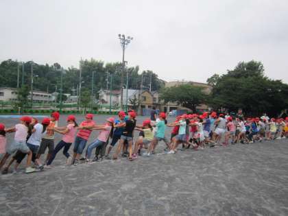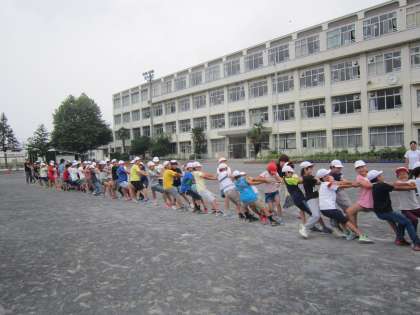 今朝は、5・6年生の元気アップタイムでした。力強い動きを高めるために、綱引きに取り組みました。