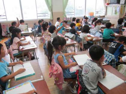 1年国語科「おおきなかぶ」 「はやくおおきくなあれ」と言ったおじいさんの気持ちを考え、話し合っていました。