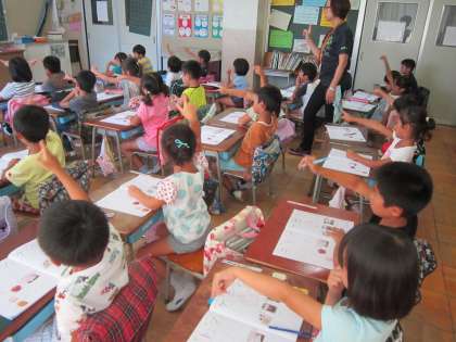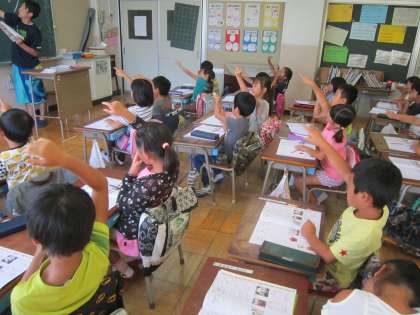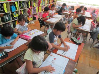 1年国語科「カタカナ」 ケ・ツ・ト・コの書き方の学習をしました。特に『ツ』は『シ』と書き間違えないようにみんなで確認していました。