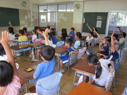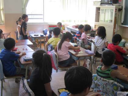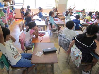 2年算数科「かけ算」 1つ分の数×いくつ分=ぜんぶの数の学習を、話し合いながら進めていました。