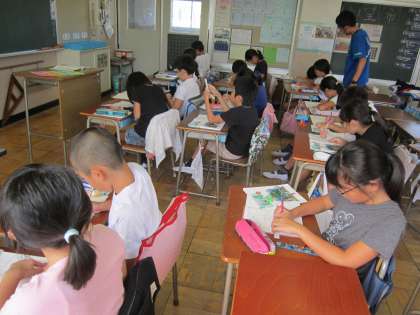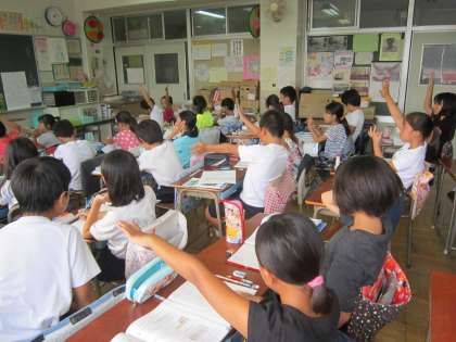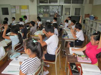4年算数科「大きな数のしくみ」 2学級3展開習熟度別の授業です。千億より大きい数の読み方を位取りカードを使ったり、表をみたりしながら学習していました。