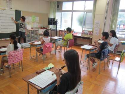 ひまわり学級音楽科 クラスごとに鍵盤ハーモニカやリコーダーの課題曲を練習していました。正確に音を出すことに丁寧に取り組んでいました。