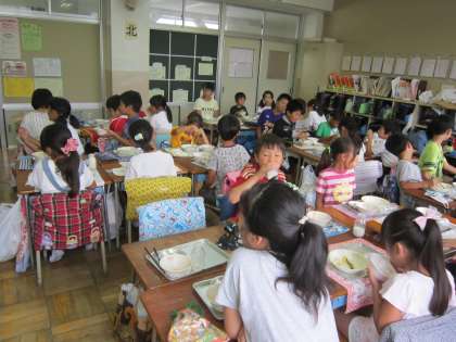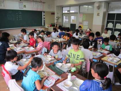 1〜6年生までのたてわり班で給食を食べて、昼休みに遊びました。雨で室内遊びでしたが、異学年で楽しく活動しました。