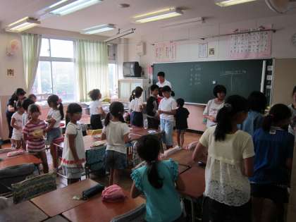 1〜6年生までのたてわり班で給食を食べて、昼休みに遊びました。雨で室内遊びでしたが、異学年で楽しく活動しました。