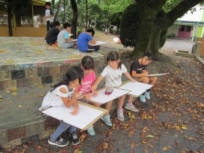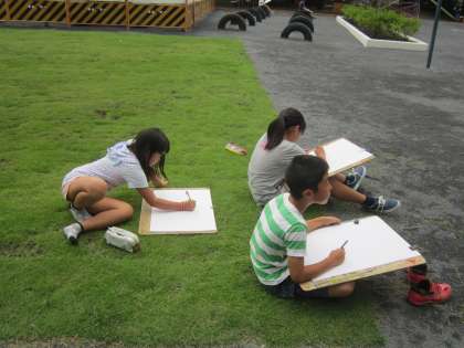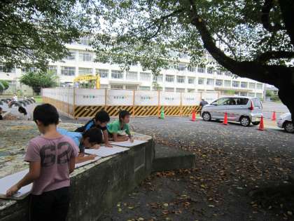 4年図画工作科「木々を見つめて」 校庭の木々を見たり、触ったりして、見たことや想像したことから、自分の木を丁寧に描いていました。