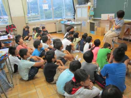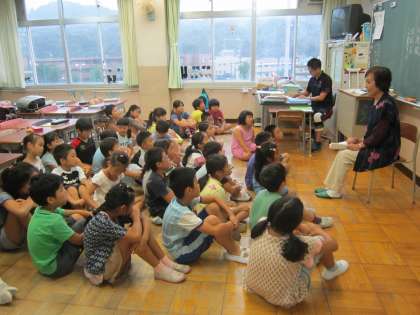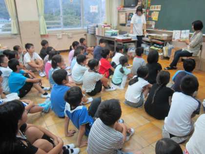 PTA読み聞かせサークル『お話レストラン』ととんとん昔『語り部の会』のコラボで、2学期も朝の読書活動がスタートしました。子供たちは、目を輝かせて聴き入っていました。