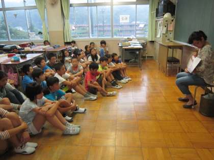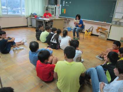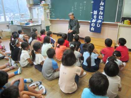 PTA読み聞かせサークル『お話レストラン』ととんとん昔『語り部の会』のコラボで、2学期も朝の読書活動がスタートしました。子供たちは、目を輝かせて聴き入っていました。