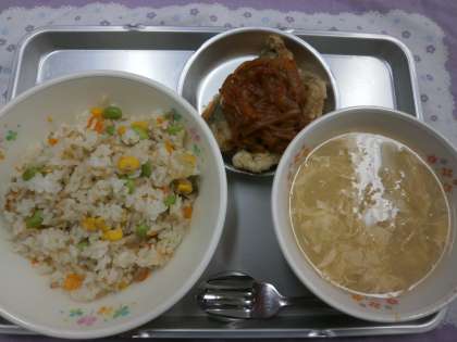 じっくり炒め、炊きあがったごはんに混ぜました。