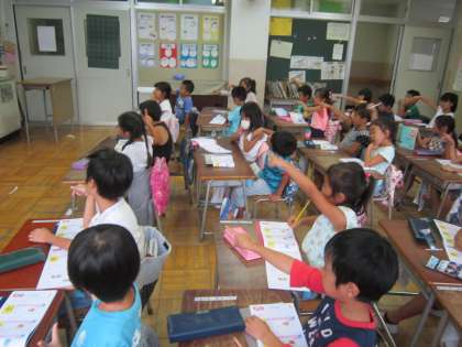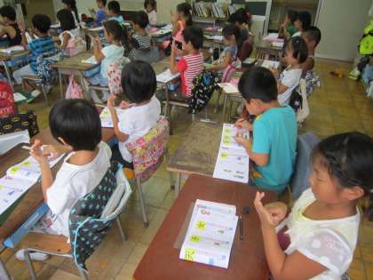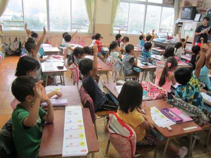 1年国語科 新出漢字「女」「手」の書き方の学習をしていました。空書きや手のひらで練習した後に、書き順や形などに気を付けて、丁寧に書いていました。