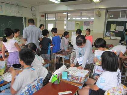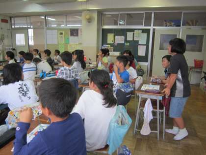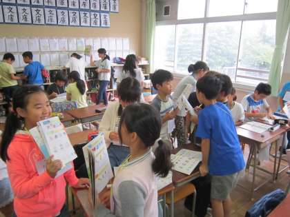 5年外国語活動「Do you like?」 友達が好きなものを予想して、英語で聞いて得点を競うゲームを楽しんでいました。