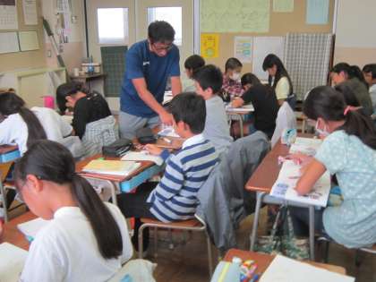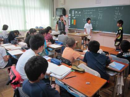 6年算数科「等しい比の性質」 2学級3展開習熟度別の授業です。大きさが等しくなる比について、どうして同じになるか?既習事項を生かして理由を考え、説明していました。