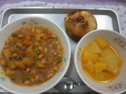 ※ 今日のパンは、調理員さんが生地から成型し焼いた