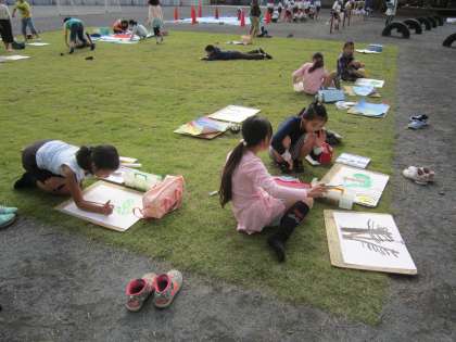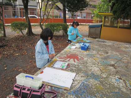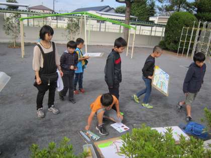 4年図画工作科「木々を見つめて」 校庭の木々を見て、自分がイメージした木の絵を描きます。イメージをたくさん膨らませていました。