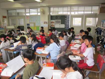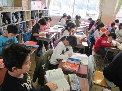 4年国語科「アップとルーズで伝える」 一人一人辞書をもって、新しい単元の語句の意味調べをしていました。
