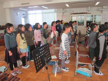 3年音楽科「富士山」 のびやかに歌おうをめあてにして、鼻から歌うをポイントにして、きれいな歌声を聴かせてくれました。