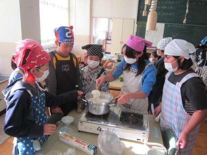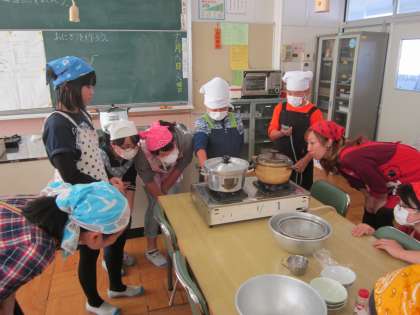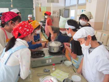 5年総合的な学習の時間「お米を作ろう」 収穫した新米を炊いて、おにぎりを作りました。美味しくいただきました。お手伝いの保護者の方々ありがとうございました。