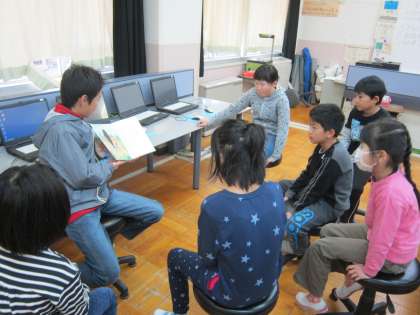 今朝は、6年生がたてわり班で読み聞かせをしました。下学年の子供たちは、6年生の読み聞かせに聴き入っていました。