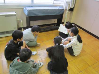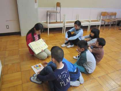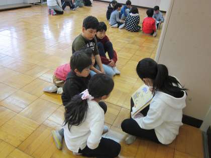 今朝は、6年生がたてわり班で読み聞かせをしました。下学年の子供たちは、6年生の読み聞かせに聴き入っていました。