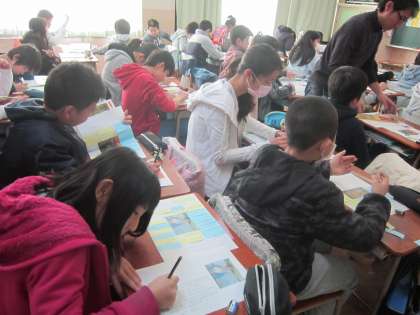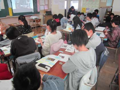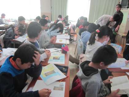 6年国語科「鳥獣戯画を読む」 美術評論家になって、絵画の鑑賞文を書いて伝え合います。ピカソやダビンチなどの名画を鑑賞して、分かったこと、考えたこと、そして作者の伝えたい主題を考え、鑑賞文にまとめていました。