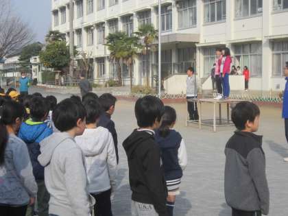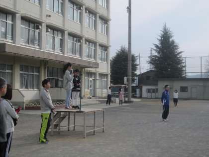 児童朝会後、美化生活員会から3月の生活目標「学校をきれいにしよう。」とダンスクラブからの連絡がありました。