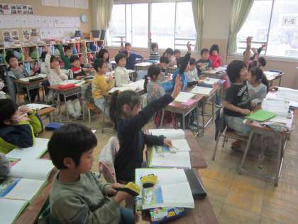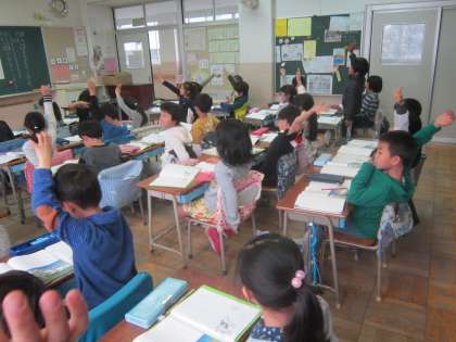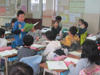 2年国語科「スーホーの白い馬」 8つ目の段落に小見出しをつける学習をしていました。クラスの中で小見出しを紹介し合って、友達と情報を共有していました。