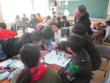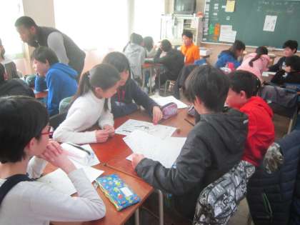6年外国語活動「What do you・・・?」 すごろくゲームでたどり着いた場所の質問を英語でします。楽しみながら活動していました。