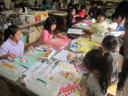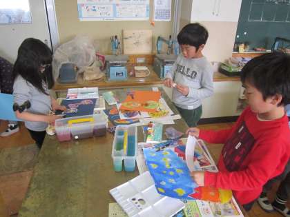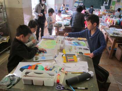 2年図画工作科「ひみつのたまご」 秘密の卵を割って、どんなもの、どんなお話が出てくるのか?工夫して絵で描いていました。